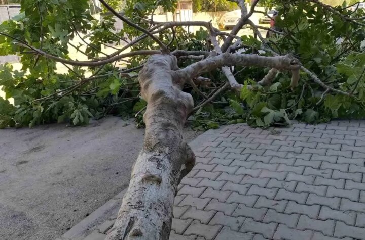 Adıyaman merkez Siteler Mahallesi'nde, şiddetli rüzgar nedeniyle bir incir ağacı kaldırım üzerine devrildi. Olayda...