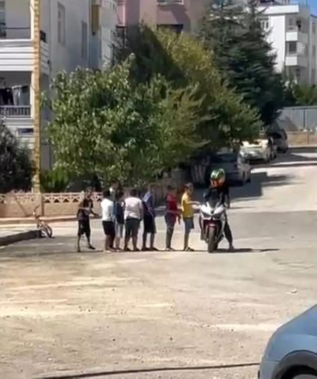 Elazığ’da bir motorcunun önünü kesen çocukları kırmayarak, orta gazla yaşadığı keyifli anlar cep telefonu kamerasına yansıdı.
