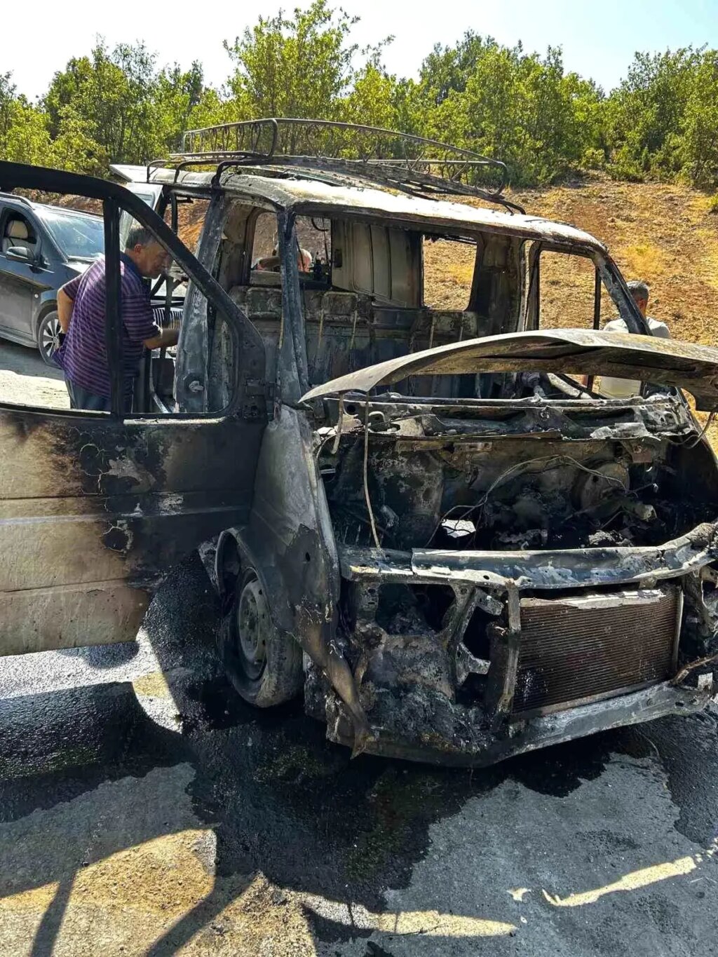 Elazığ’da alevlere teslim olan minibüs, yanarak kullanılamaz hale geldi.