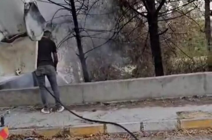 Adıyaman merkez Altınşehir Mahallesi'nde meydana gelen kuru ot yangınına, mikser şoförü Mustafa Devran müdahale...