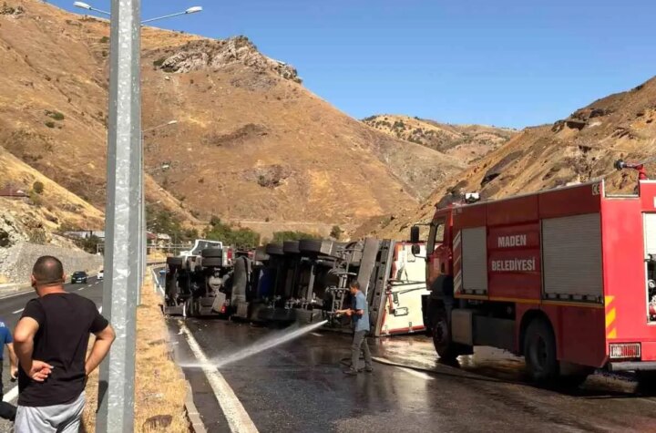 Elazığ'ın Maden ilçesinde dondurulmuş tavuk eserleri yüklü tırın devrilmesi sonucu bir kişi yaralandı ve...